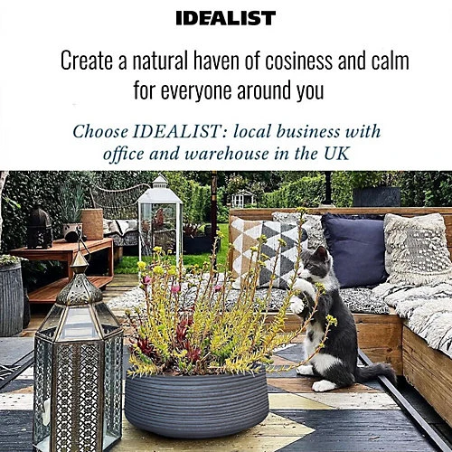 - DURABLE FIBER & STONE MIX makes the perfect material for an outdoor bowl planter. Dimensions displayed in the and shown in the visual imagery are outer edge/lip to outer edge/lip measurements. This bowl plant pot has a top edge solid lip that has a thickness of up to 2-3 cm on each side. This will reduce the maximum inner planting space by a total of 4-6 cm