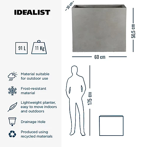 - UV & FROST RESISTANT large outdoor garden planters. The surface of this planting pot has a concrete look. This rectangular planter has enough space to allow multiple flower planting options