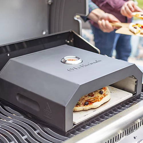 The revolutionary BBQ Pizza Oven is a premium barbecue accessory that turns your gas or charcoal barbecue into an outdoor gourmet pizza oven. Incredibly versatile and innovative, the BBQ Pizza Oven removes barbecue boundaries and will cook your homemade artisan style pizza to perfection in a matter of minutes.
