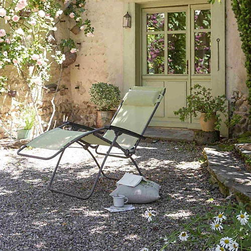 Lafuma’s garden recliner chairs are so superbly engineered and chicly designed they’re truly the ultimate sun lounger. Refined over 60 years to the point of comfortable perfection, Lafuma recliners use ‘anti-gravity’ technology, originally developed for astronauts, to support you in perfect pressure-free comfort. Your body is suspended as if in mid-air, relieving your spine, relaxing muscular tension and reducing stress on the heart. Its patented ‘Relaxer’ system lets you recline in an infinite number of positions – from upright to near horizontal – whilst remaining totally stable. Built on a powder-coated steel frame – exceptionally strong yet lightweight, the recliner features a woven mesh fabric which is supple, durable, comfortably air- and moisture-permeable and quick to dry.
