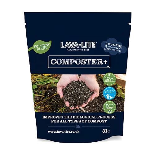 Composting at home can help reduce carbon emissions and global warming. With this in mind, LAVA-LITE COMPOSTER+, the newest member of the LAVA-LITE family, is the perfect conditioner for your compost, whether bought in a shop or made at home. COMPOSTER+ works by aiding the composting process, increasing air exchange and reducing the amount of nitrogen loss, helping to enhance the compost structure. As COMPOSTER+ does not degrade, your compost will continue to see the benefits season after season. 100% natural, eco-friendly. Does not degrade, for continued performance.