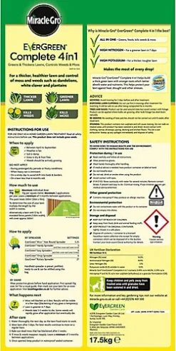 Miracle-Gro Evergreen Complete 4 In 1 Lawn Food – 500 M2, 17.5 Kg, Lawn Food, Weed & Moss Control