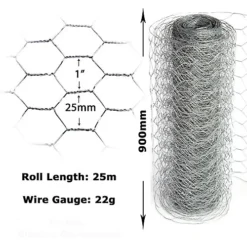 Chicken Wire Mesh Fencing Galvanised 25mm X 90cm X 25m (22g)
