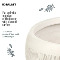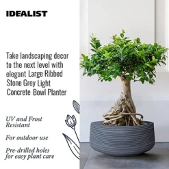 IDEALIST Large Ribbed Beige Light Concrete Garden Bowl Planter, Outdoor Plant Pot H18 D43 Cm, 26L