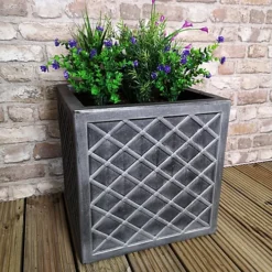 Large Lazio Square Grey Pewter Garden Planter 39cm H X 39cm W