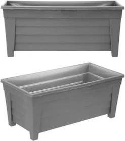 Simpa Grosvenor 55cm Grey Plastic Trough Garden Planter Set Of 2 Pots