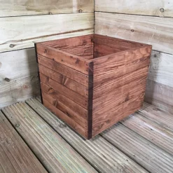 Hand Made 36cm X 36cm X 33cm Rustic Wooden Square Garden Trough Flower Bed Planter