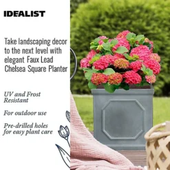 IDEALIST Contemporary Faux Lead Dark Grey Concrete Trough Planter H30 L60 W30 Cm, 54L