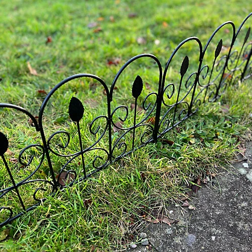This set of 10 lawn edging panels link together to make an attractive perimeter for the lawn or a flower border. Featuring an attractive leaf design, each 45cm section interlocks for stability and is made from strong, black coated wire for long-lasting service.