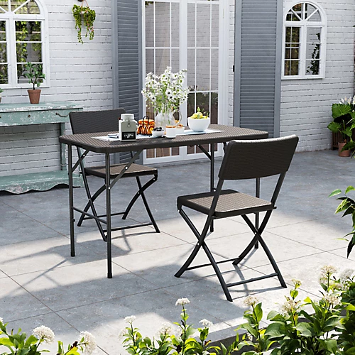 Designed for comfort, durability, and convenience, this Livingandhome furniture set is perfect for enjoying meals, hosting gatherings, or simply relaxing in your garden or patio. The set includes a folding table and two chairs, all crafted with high-quality rattan plastic that replicates the natural look of wicker while providing superior resistance to outdoor environments. Whether you have a small balcony or a spacious backyard, this set is a fantastic addition that combines functionality with style.