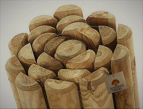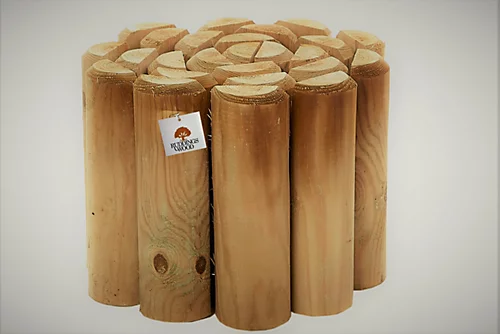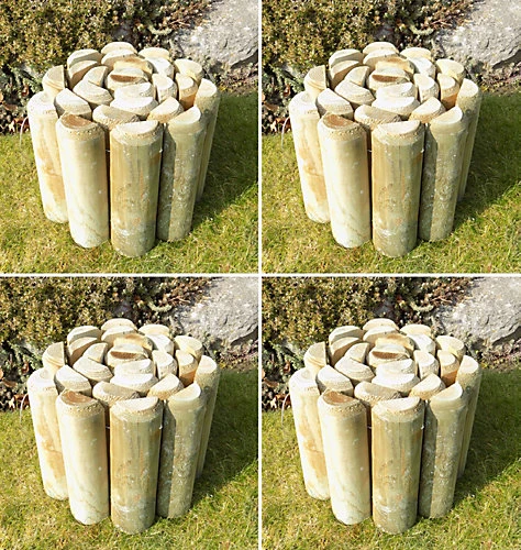 Pack of 4 x Heavy-duty wooden log roll edging. Cut from 70mm round timber to form a half round log roll edge. Ideal for lawn, path and flower border edging, perfect for creating curved borders.