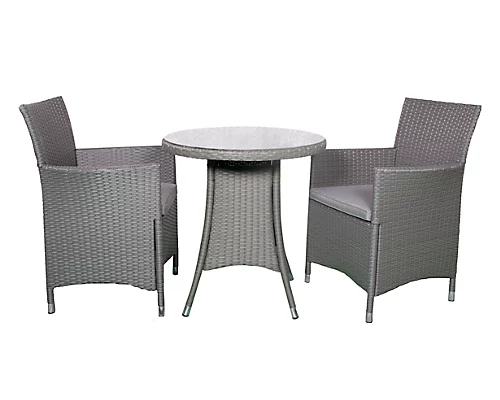 The Nevada bistro set is perfect for bringing the continental dining experience straight to your own garden. The Nevada Grey Bistro Set comes complete with a tempered glass top table and two fixed carver chairs with seat pads included, it is the perfect set for you and a friend to enjoy. Made from the highest quality polyethylene wicker around galvanized steel frames it is durable, strong and effortlessly classic.