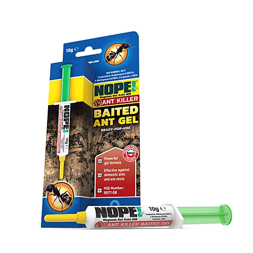 NOPE! Baited Ant Gel contains a pesticide that delays action until it has been distributed throughout the colony.
