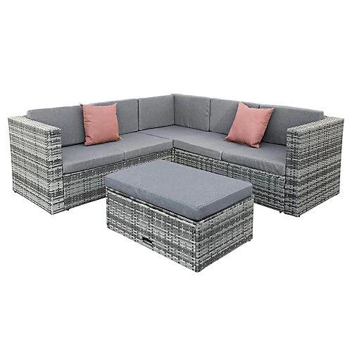 Oseasons Hampton KD Rattan 5 Seat Corner Lounge Set in Grey