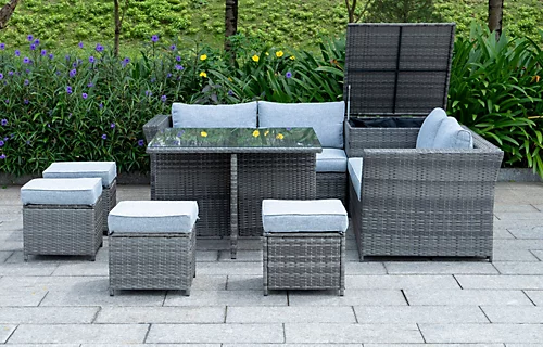 - Cushion Box Included: The set comes with a cushion box, allowing you to store your cushions when not in use, keeping them dry and protected from the elements.