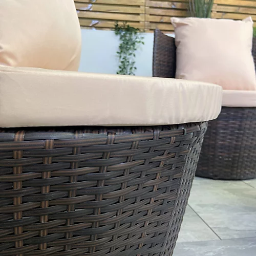 Combining style and comfort, this three-piece vase rattan garden set is perfect to allow you and your guests to relax outdoors – all year round!