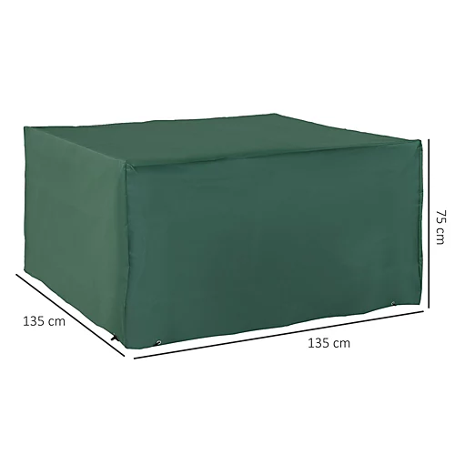 - • Item Name: Furniture Cover • Brand Name: Outsunny • Material Used: Oxford fabric • Colour: Green • Dimension: 135L x 135W x 75Hcm • Flat Pack: YES • Assembly Required: NO • Custom Label: 02-0178