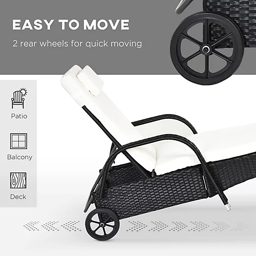 - • Item Name: Rattan Lounge Set • Brand Name: Outsunny • Material Used: Galvanized steel, PE rattan • Colour: Black, cream white • Lounger Size: 200L x 73W x 103H cm • Side Table Size: 40W x 40D x 40H cm • Box Dimension: 123L x 53W x 29H cm, 123L x 53W x 29H cm • Backrest Height: 30-103 cm • Armrest Height: 56 cm • Lounger Weight Capacity: 160kg • Side Table Weight Capacity: 50kg • Gross Weight: 19kg, 25kg • Net Weight: 40kg • Flat Pack: YES • Assembly Required: YES • Other Key Info: Seat size: 57W x 120D x 30H cm, armrest size: 8W x 56H cm, backrest size: 79L x 50W cm • Custom label: 862-010BK