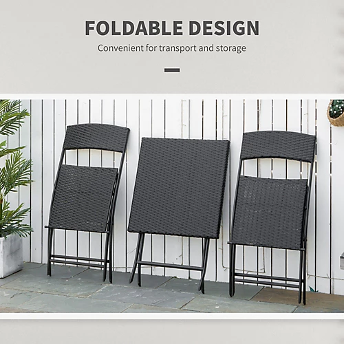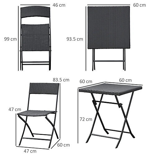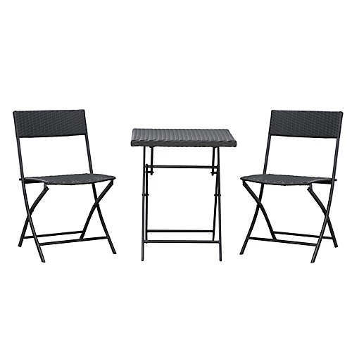 This 3 piece rattan bistro coffee set is a great solution for your garden, patio or balcony. Made with high quality metal tubing and covered with PE rattan, it will last for years to come. The set consists of 1 table and 2 chairs, a great addition to any home. The whole set can be easily be folded and stored away to create space when not in use, this set is not just useful but practical.