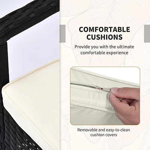 Outsunny rattan bistro set for 2 with contemporary looks, offers you a comfortable and stunning outdoor lounging experience. This conversation set will let you and your family sit back, relaxing and enjoy your great outdoor time. It is ideal for the pool side, deck or patio and many more. Featuring steel frame construction for durable use, this rattan bistro set can stand for both the test of time and temperature.