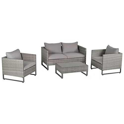 - FOUR-PIECE SET: The rattan garden furniture sets come with two armchairs, double sofa, and oblong table – seating four people, the garden sofa set is perfect for bringing family and friends together outdoors