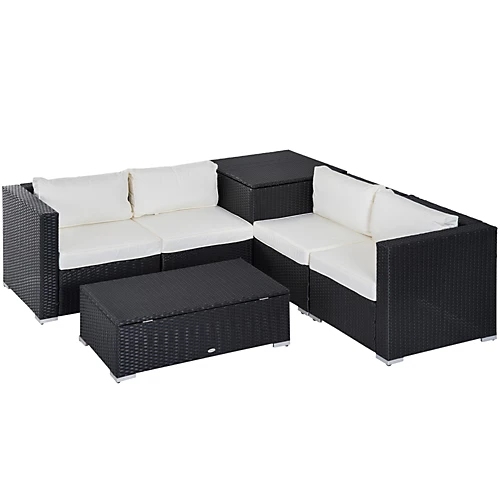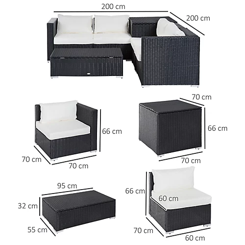 - SIX-PIECE SET: The rattan corner sofa set includes two corner seats, two single seats, a side table and a coffee table. Room for up to four people – relax together in your garden and outdoor spaces.