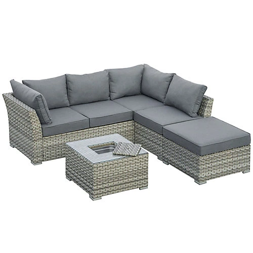 A polished seating set for the garden this season, with a cool added touch. This PE rattan set comes with a cooler table – lift the lid to reveal the ice bucket which holds between 4-6 bottles. It’s easy to enjoy a nice cold drink as the sun glistens down, without having to walk to the kitchen. An aluminium frame for a strong core, each piece is wrapped in plastic wicker for extra durability, with padded seat and back cushions for comfort. Summer days just got extra refreshing.