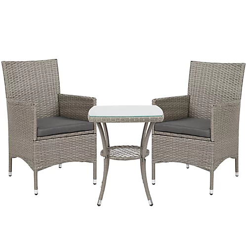This Outsunny three-piece furniture is great for any patio, garden, porch and similar spaces. Frames made from powder coated steel mean a strong structure, wrapped in plastic wicker for garden rattan style. UV and water resistant. Matching table gives a handy side surface, with a safe and sleek glass top. Repeat and use, season after season.