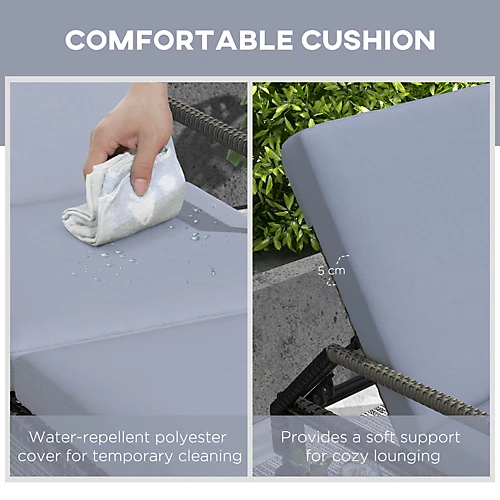 - COMFORT CUSHION: This PE rattan wicker lounger with elegant appearance for extra comfort and ideal for spending a relaxing afternoon in the garden or near the poolside. Soft padded cushion provides you with absolute relaxation