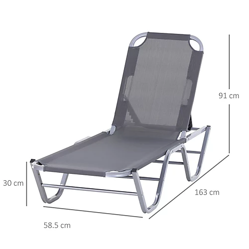 The simple and easy way to relax outdoors – grab this minimalistic Outsunny garden lounger. Using aluminium for a frame which is tough – powder coated for extra strength – you are able to relax with full support the four stump legs keep you balanced. The back is adjustable to five different positions, you are able to lie back to an angle you find most comfortable. The fabric seat is soft and smooth on the skin, making your time under the sun as enjoyable as ever before.