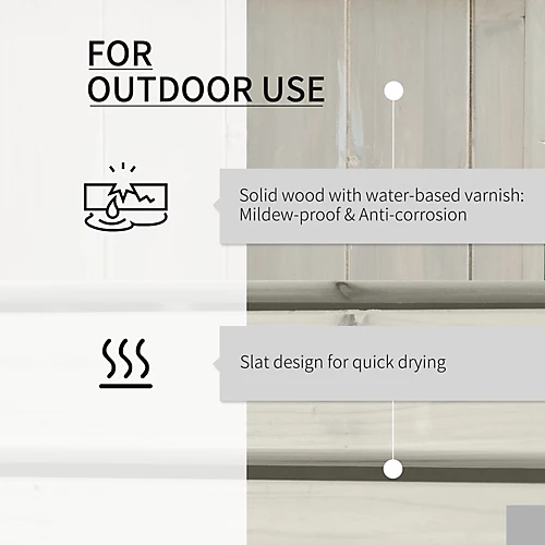 ● Solid wood structure with water-based varnish to protect from mildew and fading;
