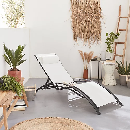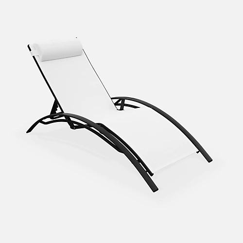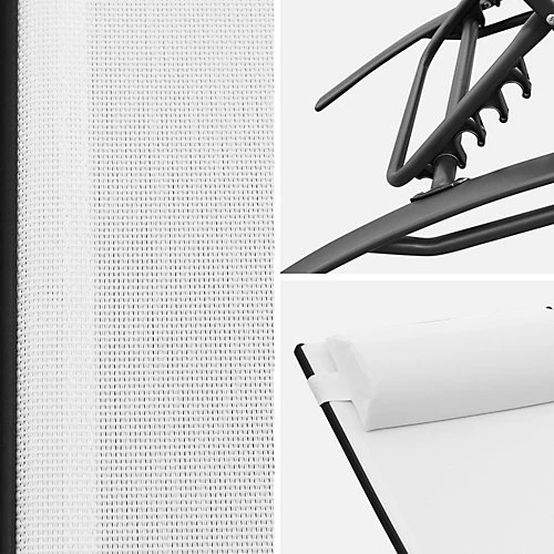 features:Complete lightweight setAdjustable backrestStacking sun loungersHead cushion included!Style:The Louisa is a classic timeless sun lounger. It is perfectly placed both at the edge of a pool and on a terrace. This anthracite / white sun lounger which is a great long term investment is both practical and comfortable. With a 4 level adjustable backrest the Louisa will adapt to your mood. Anthracite is a versatile colour similar to black but tinged with blue and grey undertones.Quality:The Louisa is an aluminium and textilene sun lounger. It is guaranteed to be durable as aluminium does not rust and textilene is resistant to poor weather. The Louisa is therefore a quality product and perfectly adapted to outdoor use. Its aluminium frame is powder coated in order to ensure an attractive uniform colour.Frame colour: AnthraciteTextilene colour: WhiteTechnical features:Aluminium frameComfortable The fabric adapts to your body and its honeycomb structure makes it breathable in hot weather.4 level adjustable backrest.StackingSturdy weather resistant fabric.Easy maintenanceDimensions:L167 x W64 x H82.5cm