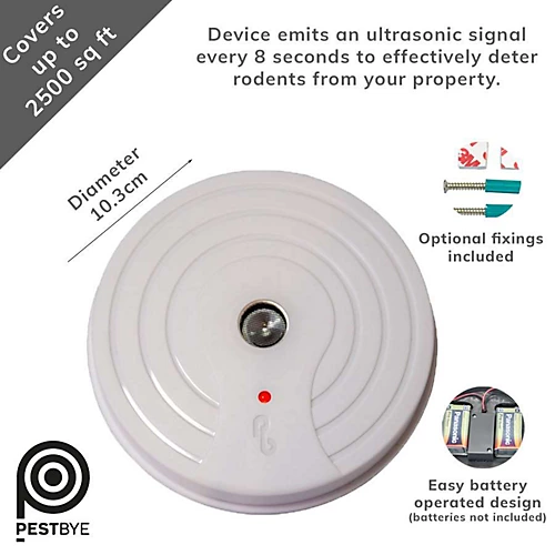 - Perfect for larger spaces – the repeller emits an ultrasonic signal every 8 seconds, protecting an unobstructed area of up to 2500sqft, making it perfect for lofts, barns, and other large areas