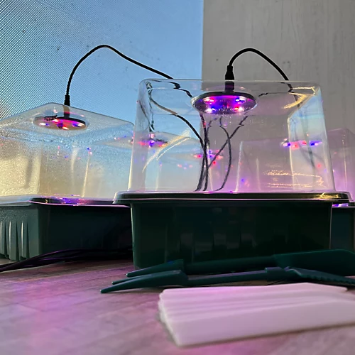 What makes this growing pack that little bit more special is the inclusion of a full spectrum USB light in the circular vent covers for each tray; the lights sit in the vents on top of the lid and are connected by cable to a USB power source such as a