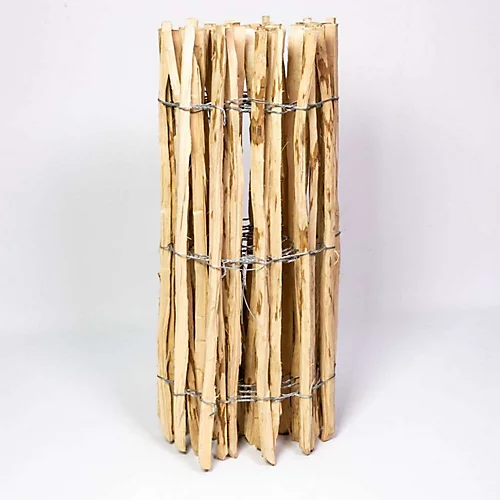 Add rustic charm to your garden with this split hazel fencing. It’s a rustic alternative to traditional picket fences, enhancing your garden’s natural beauty while clearly defining borders. This versatile fencing, also known as paling, serves as an excellent permanent or temporary barrier for various garden purposes. It’s perfect for creating borders around play areas or vegetable patches, keeping animals away from lawns, or even constructing a chicken pen.
