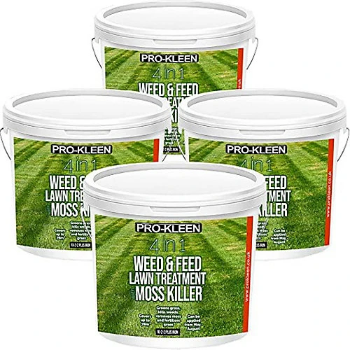 Pro-Kleen 4 In 1 Weed And Feed Lawn Treatment With Moss Killer – Greens Grass, Kills Weeds & Moss & Fertilises Grass 10kg