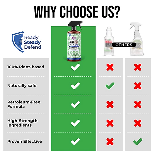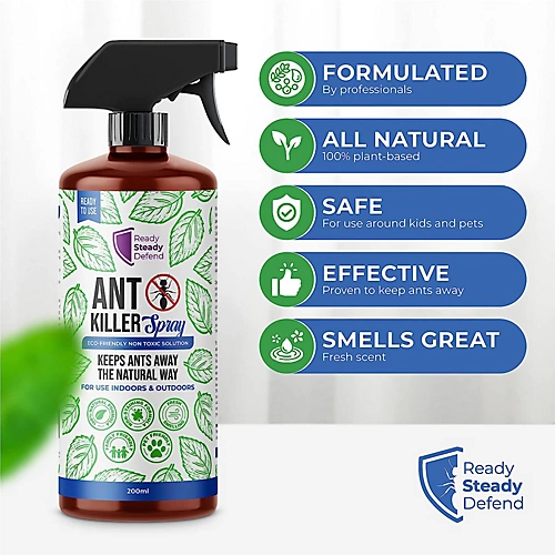 - POWERFUL & NATURAL: Ready Steady Defend Ant Killer Spray offers a potent and natural solution to combat ant infestations in your home. Formulated by professionals, this spray is designed to effectively repel and deter ants from entering your living space.Whether you’re dealing with ants inside your home or facing an infestation in your garden or patio, this spray provides a versatile solution to combat ant problems in all areas of your home.