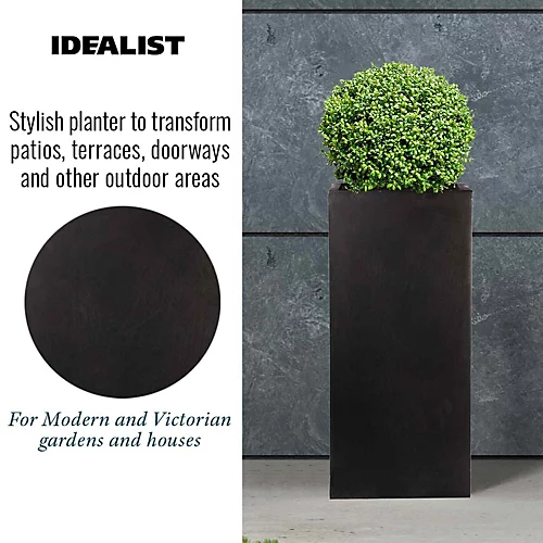 - UV & FROST RESISTANT tall square plant pot. This black planter has a contemporary concrete look. Place it in the garden for stylish flower arrangements