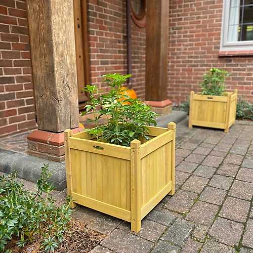 These wooden planters look splendid whatever is contained in them. A pair planted up with roses, stately boxes, specimen trees or shrubs and placed each side of a door or gateway provide a beautiful frame for any entrance. Brimming over with flowers, they look wonderful in conservatories, hallways, on patios, terraces or balconies providing colour and scent wherever you like to sit. Site one by the kitchen door, planted up with your favourite and most used herbs, and they’ll be ready for picking when needed. If space is really at a premium and you fancy some home-grown vegetables, they make excellent potato planters or pots for finger carrots and other salad crops. Mini sweetcorn, climbing courgettes, several varieties of tomato and even some fruit bushes all do well in containers.