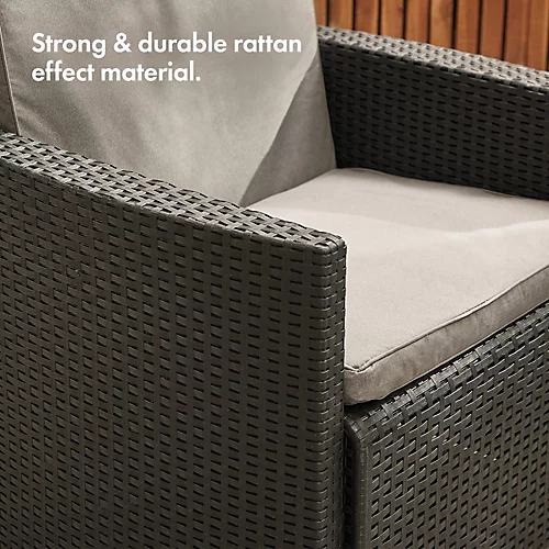 Finished with a versatile black and grey colourway to fit with any garden space, the rattan-style 4-piece sofa set features a contemporary rattan design to add a natural yet contemporary touch to your garden.