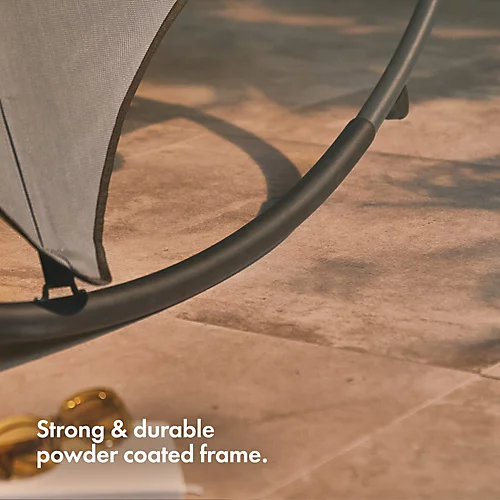 With a powder finish for extra strength and durability in all weathers, we’re looking forward for long days enjoying the heat on this grey rocking sun lounger.