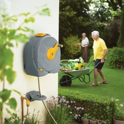 Hozelock Wall Mounted Hose Reel With Hose Guide Grey (One Size)