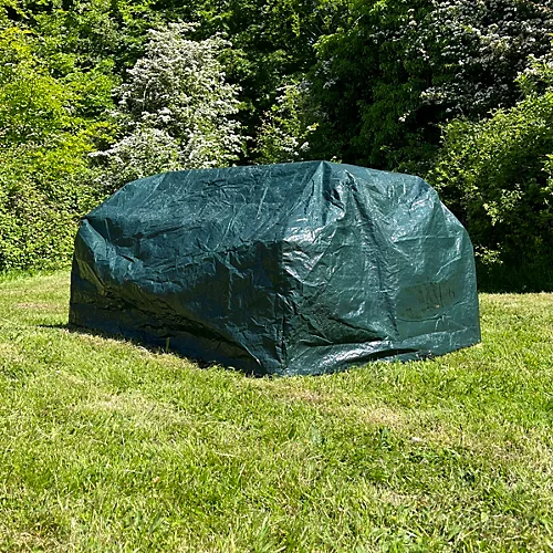 This garden picnic table cover is made from strong, hard wearing woven 100gsm polyethylene and is resistant to dust, rain, dew, and other debris. It is easily washable, and the design of the cover allows you to fold it away compactly for storage. The cover has sturdy stitched seams and is a great way to offer protection from the elements for your picnic table during the outside dining season and beyond. The dimensions for this cover are 157cm in length by 70cm wide at the top and 145cm wide at the base, by 76cm high at the peak and 50cm high at the sides. The cover has a nylon drawstring through metal eyelets to hold it firmly onto your table.
