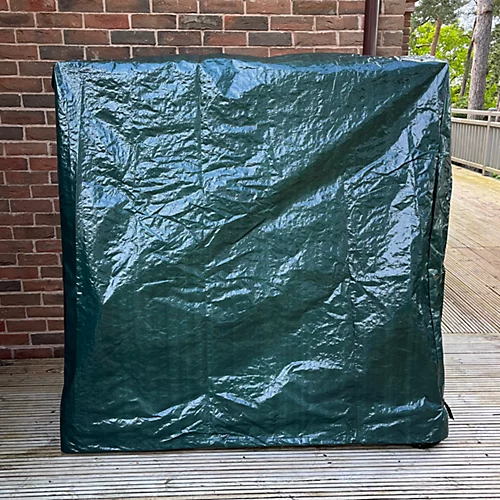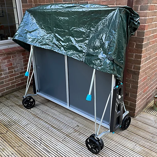 Protect your table tennis table from dust, dirt, and the elements with our waterproof cover. Made from 100gsm polyethylene, the cover is easily washable and folds away when not in use. Sturdy stitched seams add strength to the cover, and it can be fixed in place by way of a nylon drawstring, and a strap with buckle for twice the peace of mind. The cover measures 165cm wide by 185cm tall. The depth at the base is 70cm and it tapers to 30cm at its peak. Whilst our waterproof cover won’t help you improve your ping pong game, it’ll certainly help protect your playing surface.